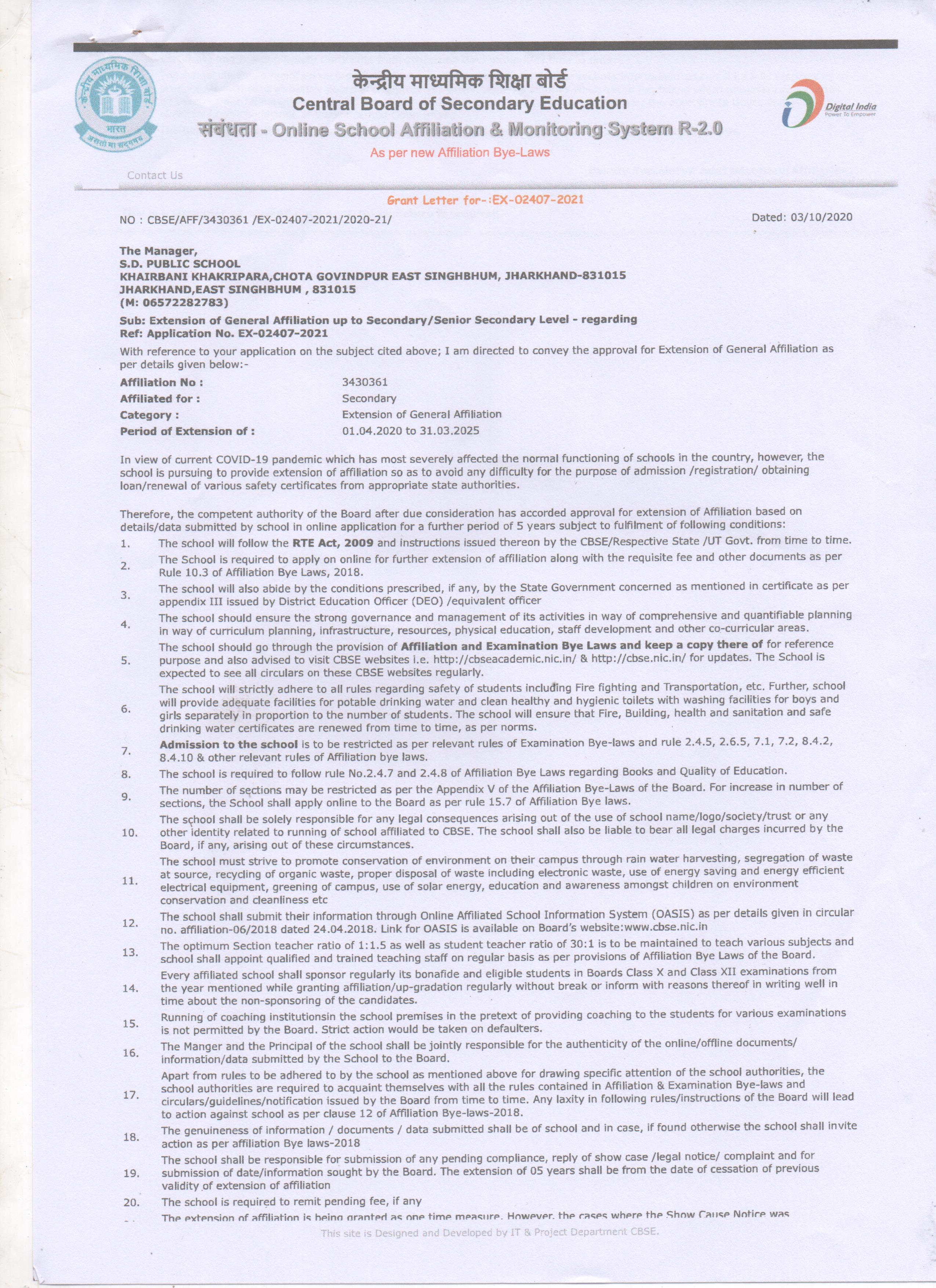 7. Self Certification by School Reg. Extension Of Affiliation